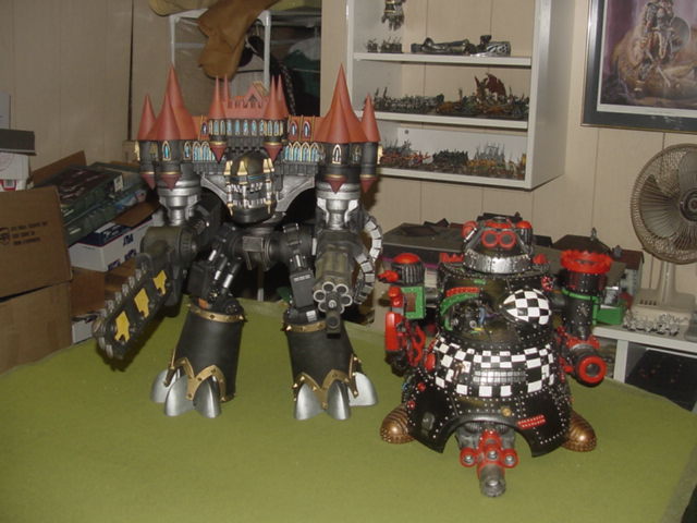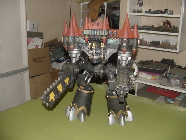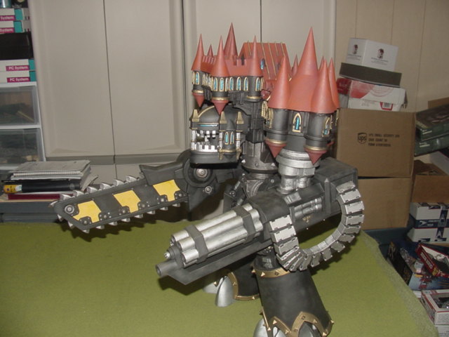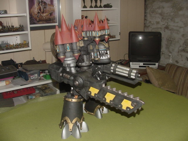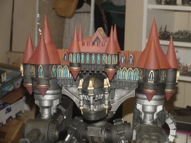 The Blockhead's upper carapace is covered by a giant gothic cathedral. The cathedral is features twin turrets, multiple firing ports, and forward / rear observation decks. |